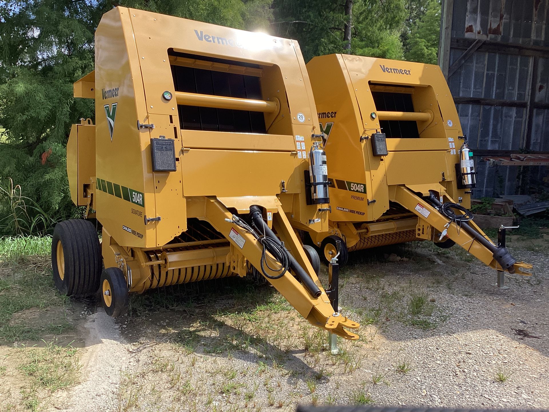 The all-new Vermeer 504R Premium baler is fully loaded and comes standard with a silage kit specially designed for high output of high-moisture crops. More than a silage special, this baler is equipped with heavy duty components, premium belts, a 5-bar camless pickup and the Atlas Control System. This package offers more capacity in heavy crops and produces good looking bales in tough conditions. Plus, a Vermeer 3-year pickup warranty provides peace of mind for many silage seasons to come. Silage or not, this is your first-class baler. Standard grease banks-Optional Automatic greasing system with user-defined lube intervals Heavy-Duty Components-80 chain, extended lube driveline (80 deg CV, 540 RPM), large bearings and shafts. The 504R Premium baler has increased pickup speed and a faster tie cycle when compared to the 504R Signature. Hydraulic controls allow the operator to easily lift and lower the pickup without getting out of the cab of the tractor. Six durable Goodyear G315 rockbelts come standard on the 504R Premium. Optional endless belts are available.